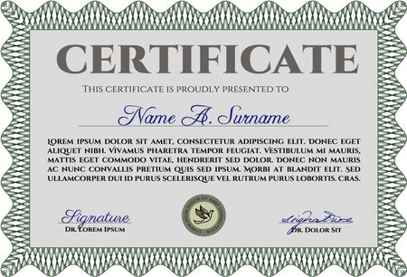 Green Classic Certificate template. With great quality guilloche pattern. Money Pattern. Award.