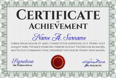 Green Classic Certificate template. Money Pattern design. With great quality guilloche pattern. Award.