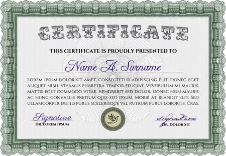 Green Diploma. Good design. With background. Border, frame.