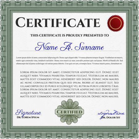 Green Diploma template or certificate template. Detailed.Good design. With guilloche pattern.
