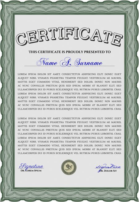 Green Diploma template or certificate template. With quality background. Vector pattern that is used in money and certificate. Beauty design.
