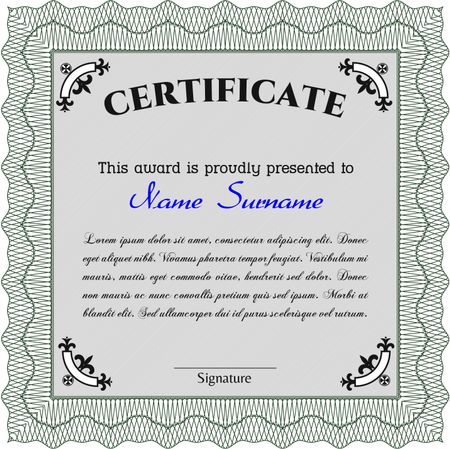 Green Diploma template or certificate template. Vector pattern that is used in money and certificate. With quality background. Artistry design.