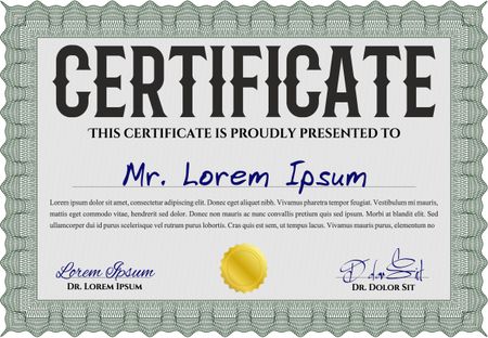 Green Diploma template. With complex background. Lovely design. Vector illustration.