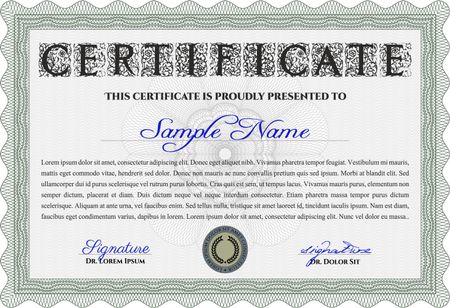 Green Sample Certificate. Frame certificate template Vector. Modern design. With linear background.