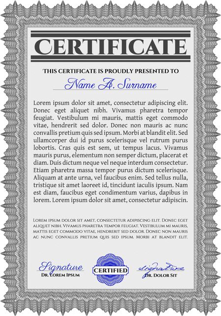 Grey Certificate or diploma template. Customizable, Easy to edit and change colors. Easy to print. Cordial design.