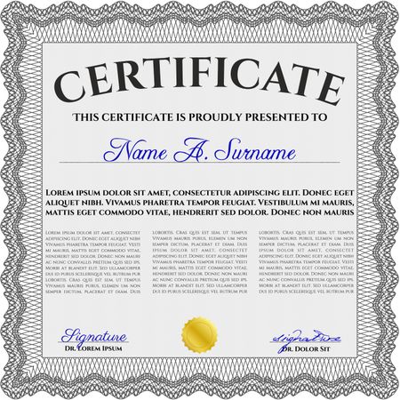 Grey Diploma template or certificate template. Vector pattern that is used in money and certificate. With quality background. Artistry design.