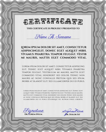 Grey Sample Diploma. Frame certificate template Vector. Elegant design. With linear background.