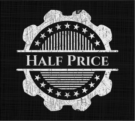 Half Price written on a chalkboard