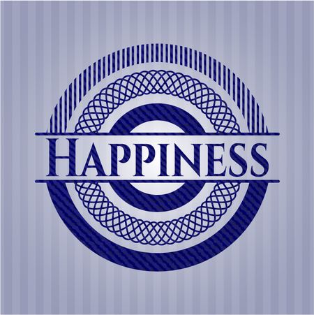 Happiness emblem with denim high quality background
