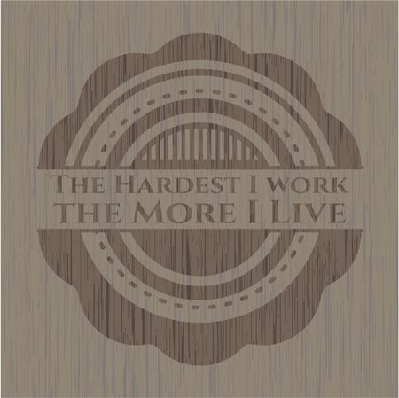 The Hardest I work the More I Live badge with wooden background