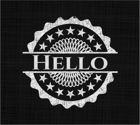 Hello chalk emblem written on a blackboard