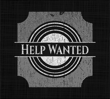 Help Wanted chalk emblem written on a blackboard