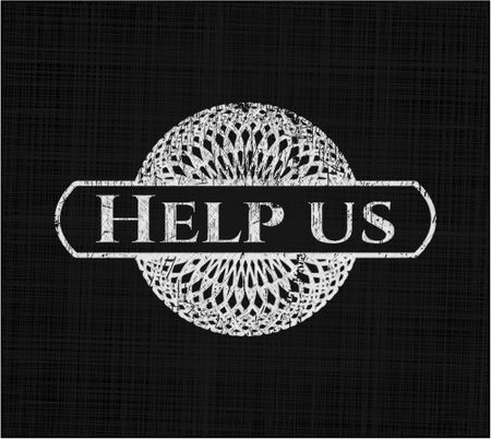 Help us written on a blackboard