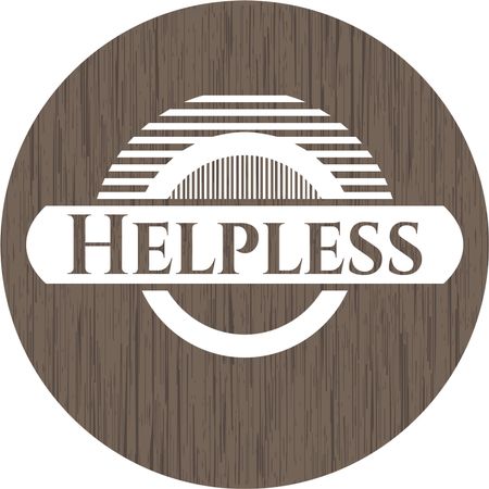 Helpless badge with wooden background