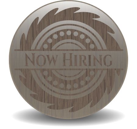 Now Hiring wooden emblem. Retro