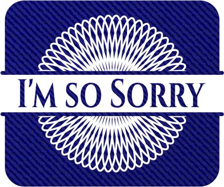 I'm so Sorry badge with denim background