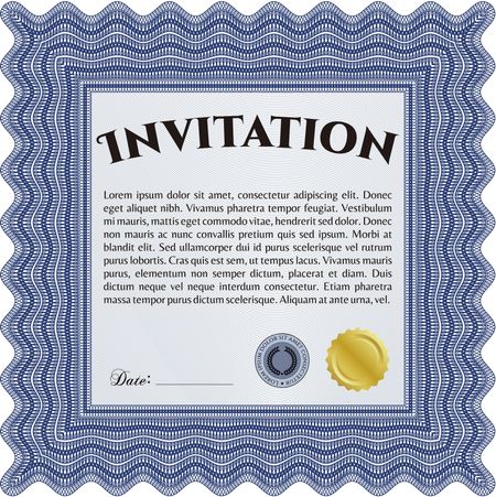 Invitation. Nice design. Vector illustration.With guilloche pattern.