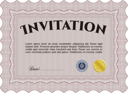 Invitation template. Customizable, Easy to edit and change colors.With guilloche pattern and background. Retro design.