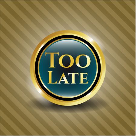 Too Late golden emblem or badge