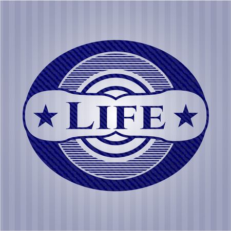 Life badge with denim texture