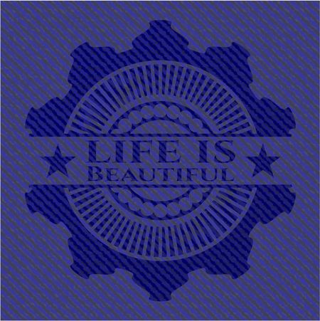 Life is Beautiful badge with denim texture