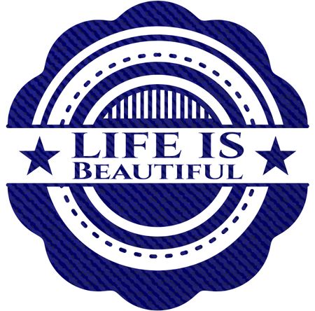 Life is Beautiful badge with jean texture