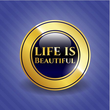 Life is Beautiful gold shiny emblem