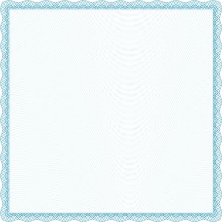 Light blue Certificate of achievement. Diploma of completion. With guilloche pattern and background. Sophisticated design.