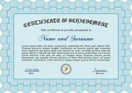Light blue Certificate. Complex design. Detailed. Printer friendly.