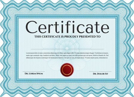 Light blue Certificate. Detailed. Printer friendly. Complex design.