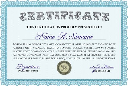 Light blue certificate or diploma template. Modern design.