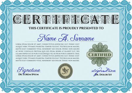 Light blue Certificate template. Printer friendly. Detailed. Nice design.