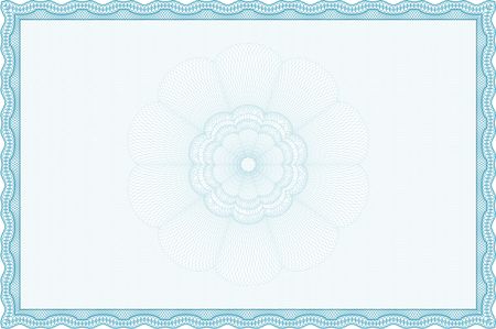 Light blue Diploma or certificate template. With complex background. Lovely design. Vector illustration.