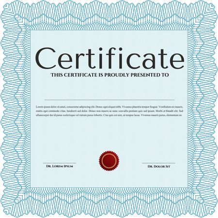 Light blue Diploma template. With background. Border, frame. Excellent design.