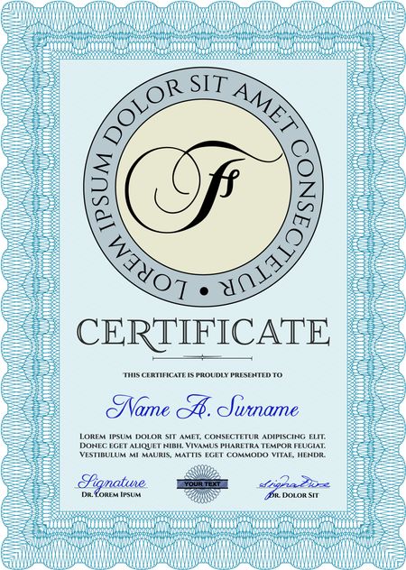 Light blue Diploma template or certificate template. Artistry design. With quality background. Vector pattern that is used in money and certificate.
