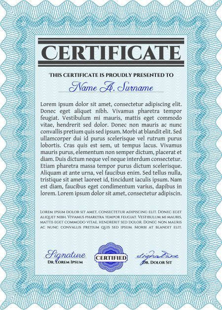 Light blue Diploma template or certificate template. Artistry design. With quality background. Vector pattern that is used in money and certificate.