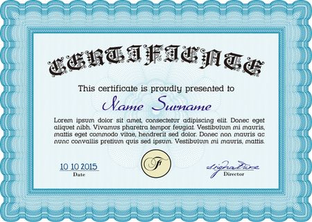 Light blue Diploma template. Lovely design. Vector illustration. With complex background.
