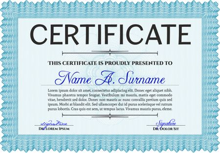 Light blue Sample certificate or diploma. Vector certificate template. Elegant design. With complex linear background.