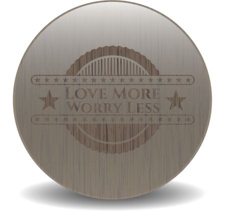 Love More Worry Less vintage wooden emblem
