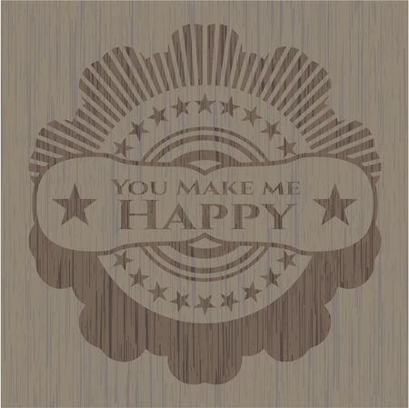 You Make me Happy badge with wooden background