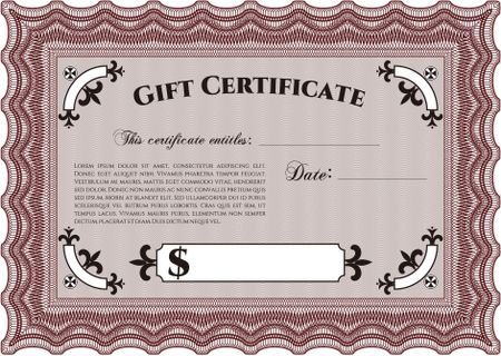 Modern gift certificate. Artistry design. With complex linear background. Border, frame.