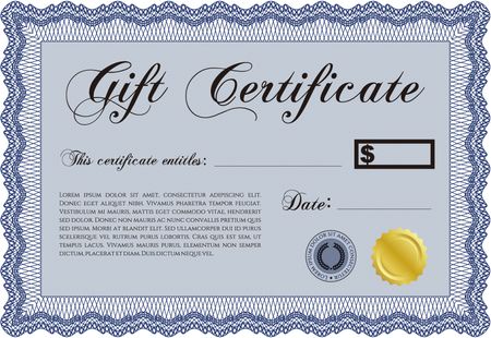 Modern gift certificate. Cordial design. Detailed.With guilloche pattern and background.