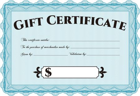 Modern gift certificate. Printer friendly. Detailed.Elegant design.