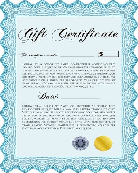 Modern gift certificate. Retro design. With great quality guilloche pattern.