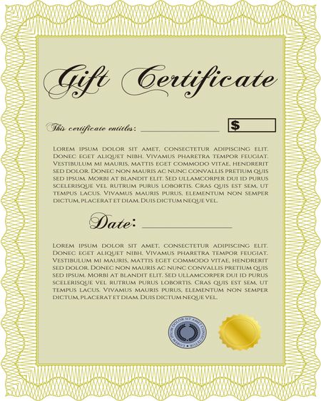 Modern gift certificate. Retro design. With guilloche pattern.