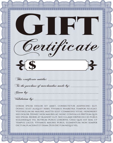 Modern gift certificate. Sophisticated design. With great quality guilloche pattern.