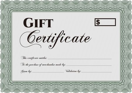 Modern gift certificate template. With great quality guilloche pattern. Sophisticated design.