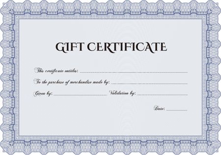 Modern gift certificate template. Sophisticated design. With great quality guilloche pattern.
