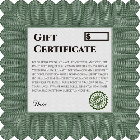 Modern gift certificate template. Sophisticated design. With great quality guilloche pattern.