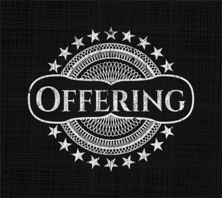 Offering chalk emblem, retro style, chalk or chalkboard texture